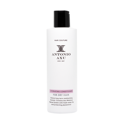 Hydrating Conditioner från Antonio Axu är en intensivt, fuktgivande balsam utvecklad speciellt för daglig vård av torrt hår. Den innehåller det avancerade Axu Moisture Rescue System med skyddande fytantriol och närande extrakt från bambuskott och lotusblomma, som tillsammans förser håret med djupverkande fukt, värmeskydd och oemotståndlig mjukhet och glans.