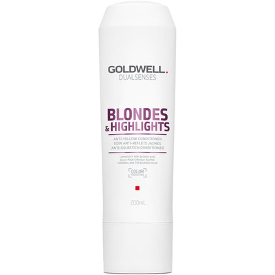 Goldwell Dualsenses Blondes & Highlights Anti-Yellow Conditioner är lämplig för blont och slingat hår. Balsamet bidrar till att intensifiera hårfärgen och neutralisera oönskade gula toner som kan uppträda i ljusa färgreflexer. Blondes Conditioner framhäver färgen och lämnar håret vackert och strålande. Det mjukgör håret och gör det lättare att reda ut, samtidigt som färgförlust förebyggs vid tvätt av håret och bleknande färg. Balsamet är tillverkat med Goldwells unika färgteknologi som osynligt omvandlar UV-ljus till synligt ljus, vilket gör håret vackert och strålande.