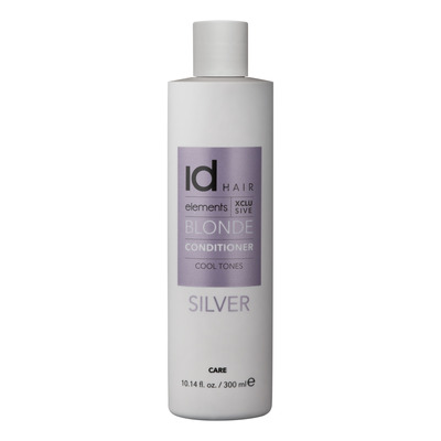 IdHAIR Elements Xclusive Blonde Conditioner Silver minskar varma toner i håret, vilket gör det lämpligt för platinablont hår. Balsamet innehåller ametist som ger det färg samtidigt som det neutraliserar gula och varma toner i håret. Ametist har en lugnande effekt på håret och lämnar det glänsande. Detta balsam innehåller även sheasmör, som mjukar upp och skyddar håret.