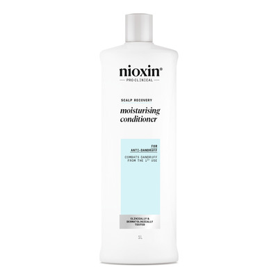 Nioxin Scalp Recovery Conditioner, här i en variant på 1000 ml, är ett närande och återfuktande balsam som bekämpar mjäll och lugnar torr och kliande hårbotten. Det är en del av Nioxin Scalp Recovery-systemet och innehåller Piroctone Olamine, grönt te-extrakt och NioDerma™-teknik som hjälper till att återställa hårbottnens naturliga balans och minska symtomen på seborroisk dermatit.