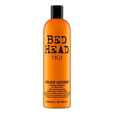 TiGi Colour Goddess Conditioner är skapat för att ge näring åt färgat hår. Balsamet ger nytt liv åt kemiskt behandlat hår, vitaliserar hårfärgen och ger glans. Med E-vitamin och linfrö, som är rika på antioxidanter, ger det näring åt håret och bekämpar fria radikaler. Keratin reparerar, medan kokosolja och sötmandelolja ger näring och återfuktar. Panthenol bevarar fukten medan sheasmör ger näring på djupet. Behentrimoniumklorid mjukgör, vårdar och minskar statiskt hår och frissighet. Den söta karamelldoften bidrar till den vårdande upplevelsen.