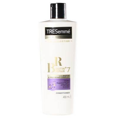 Har du torrt, skadat och livlöst hår? Testa då detta balsam från TRESemmé. Det är framställt med ett patenterat Pro-Bond Complex, som består av en noggrant sammansatt blandning av molekyler som bidrar till att återuppbygga brutna bindningar i hårfibrerna. Den unika formulan ger styrka och näring till varje strå, så att skador från styling repareras. Balsamet kommer faktiskt att återställa ditt hår från 7 olika stylingskador redan efter den första tvätten! Detta gör att du kan skämma bort ditt hår med Biotin + Repair Conditioner, oavsett om du fönar, lockar, plattar, bleker, färgar, borstar eller flätar håret.