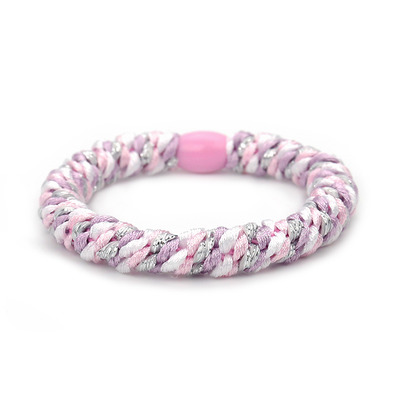 Fin hårsnodd i den mycket populära tvinnade designen, som har en kraftig resår, som är klädd med ett färgat band. Snodden bidrar till att piffa upp din outfit samtidigt som håret hålls på plats. Den kan användas i både tjockt och tunt hår, och tvinnas runt håret hur många gånger du vill tills det får önskat fäste. Denna resår är i rosa och lila.