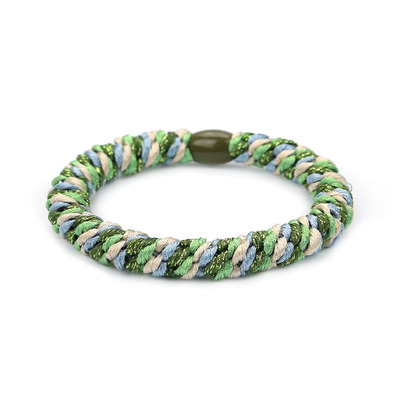 Fin hårsnodd i den mycket populära tvinnade designen med en kraftig resår som är klädd med ett färgat band. Snodden piffar upp din outfit samtidigt som håret hålls på plats. Den kan användas i både tjockt och tunt hår och tvinnas runt håret så många gånger du vill. Denna resår är i en fin design i blått och grönt.