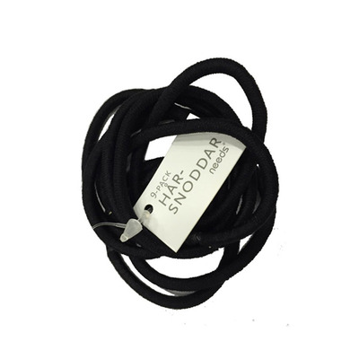 Förpackningen innehåller 9 svarta hårsnoddar.