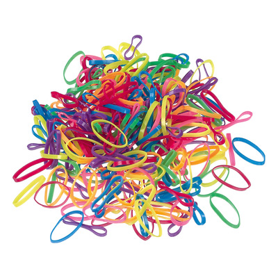 500 st små hårresår i regnbågens färger med vilka du undviker att dra ut håret när de ska tas ut igen. Dessa resårer är relativt mjuka och de behåller sin flexibilitet mycket bra och är hållbara.