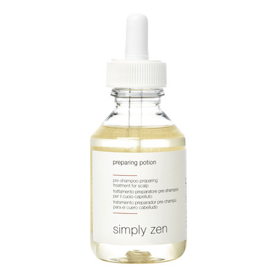 Simply Zen Preparing Potion är ett pre-shampoo för känslig eller irriterad hårbotten. Den är skapad för att förbereda och göra hårbotten redo för optimal hårtvätt eller behandling. Pre-shampoon går in och hjälper hårbotten att slappna av och tar bort alla rester av fett och smuts runt hårsäckarna. Pre-shampoo innehåller aktiva ingredienser som eukalyptus- och citronolja, panthenol och brännässla. Den har en fräsch och uppfriskande doft.