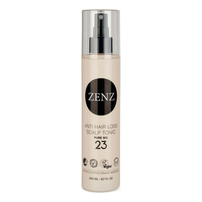 ZENZ 23 Anti Loss Tonic är parfymfri och lämplig för gravida kvinnor och personer med känslig hårbotten. Den är tillverkad i Danmark och levereras i en återvunnen plastförpackning. För bästa resultat, använd det tillsammans med ZENZ Stimulating Shampoo Pure nr 22.