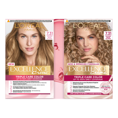 Om du är lite tveksam till att färga håret är Excellence Crème den självklara startprodukten för dig! Excellence gör det möjligt att färga håret skonsamt, enkelt och snabbt hemma, utan att skada hår eller hårbotten och du uppnår ett säkert och glänsande resultat omedelbart. Produkten består av tre komponenter: en färg, ett schampo och en lätt hårmask, som alla består av skyddande ingredienser som vårdar och tar hand om ditt hår under och efter färgning, så att det förblir friskt och färgen håller länge. Excellence finns i hela 24 olika nyanser, så att du kan få precis den ton du önskar.
