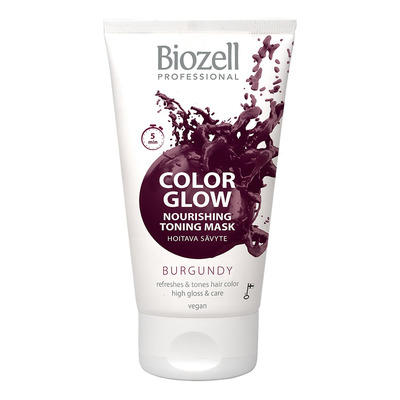 Biozell Color Glow Nourishing Toning Mask Burgundy fräschar upp och intensifierar hårfärgen och ger en vacker glans. Color-Lock-tekniken bevarar hårfärgen längre och ger håret ett levande och strålande utseende. Masken vårdar som ett balsam och tonar som en färg - med vackert resultat på bara 5 minuter.