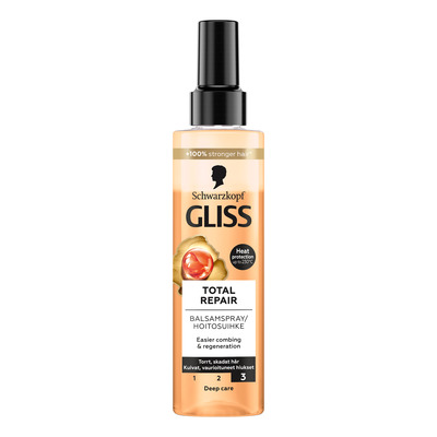 Schwarzkopf Gliss Total Repair Conditioner Spray sprayas i vått hår för lättare kamning och mer glans