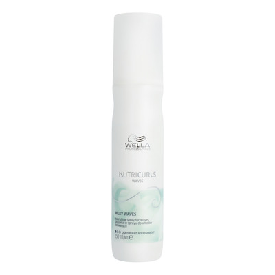Wella Professionals Nutricurls Milky Waves är en vårdande leave-in spray speciellt utvecklad för vågigt hår. Den mjölkigaktiga formulan med vetekli-extrakt och jojobaolja återfuktar och gör håret mjukt, mer lätthanterligt och lättstylat. Produkten motverkar friss och framhäver hårets naturliga vågiga textur utan att tynga.