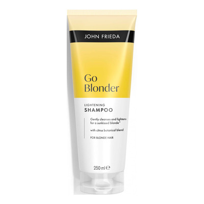 John Frieda Sheer Blonde Go Blonder Lightening Shampoo är speciellt framtaget för att ljusa upp både naturligt och färgbehandlat blont hår samt hår med ljusa slingor. Den milda formulan hjälper till att skapa en solupplyst look året runt samtidigt som hårets naturliga fuktbalans bibehålls. Schampot gör håret mjukt och mer lätthanterligt utan att skada eller torka ut. Det är säkert att använda regelbundet och passar alla som vill ha en gradvis uppljusning av sitt blonda hår.