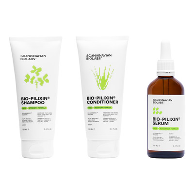 Scandinavian Biolabs Hair Activation Routine Women är en 3-stegs hårvårdsrutin som är utformad för kvinnor som upplever initialt eller måttligt håravfall. Setet består av schampo, balsam och serum som är inriktade på hårets naturliga tillväxtcykel. Hårprodukterna innehåller växtbaserade tillväxtfaktorer som utvecklats med stamcellsteknik för att ge näring åt hårsäckarna och stärka håret. Formulan är kosmetisk och fri från hormonstörande ingredienser.