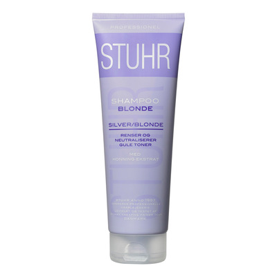 STUHR Blonde Shampoo är ett neutraliserande silverschampo med violetta pigment för blont hår