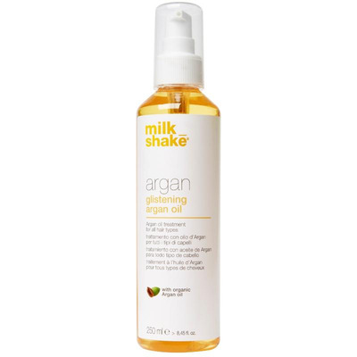 Milk_shake Argan Oil är gjord av ekologisk arganolja som vårdar och ger näring till håret på djupet. Oljan passar alla hårtyper och lämnar håret återfuktat och silkesmjukt. Oljan gör håret glansigt och voluminöst och bekämpar frizz. Arganolja förkortar även torktiden vid föning, så att du snabbt kan komma igång med din dag. Oljan tillför en skön, mild och lyxig doft till håret.