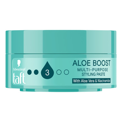 Schwarzkopf Taft Aloe Boost Multi-Purpose Styling Paste 75 ml är en mångsidig stylingpasta som stärker och vårdar håret och ger det en fylligare känsla. Den innehåller aloe vera som återfuktar och ger näring samt niacinamid som stärker hårstråna. Pastan gör det enkelt att skapa olika frisyrer samtidigt som håret får en naturlig och flexibel stadga.