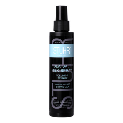 STUHR Styling Sea Salt Tex Spray med UV-skydd ger kropp och textur för en naturlig strandlook. Den kan användas för att ge extra fyllighet och mjuka lockar eller för att skapa en sträv och rufsig look. Berikad med närande Provitamin B5 och Macadamiaolja. Kan användas för alla hårtyper i både vått och torrt hår.