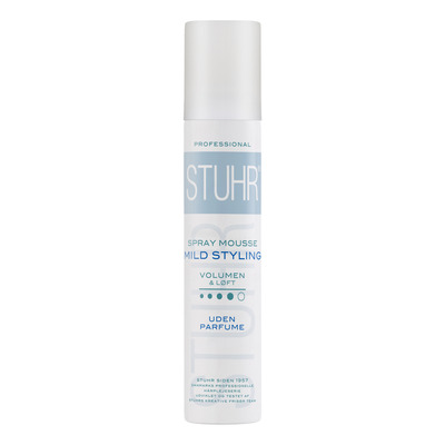 STUHR Mild Spray Mousse Root Lift är en aerosol och måste förvaras på ett säkert sätt. För fint hår och för extra fyllighet kan moussen även appliceras i själva håret. Den är lämplig för fint och platt hår som behöver volym och lyft från roten.
