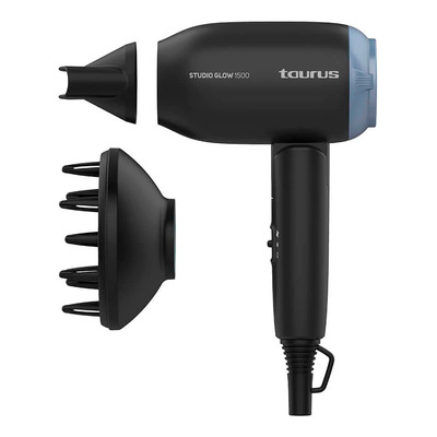 TAURUS Hårfön Studio Glow 1500 är en hopfällbar resehårtork med dubbel spänning på 110/240 V och 1400 W