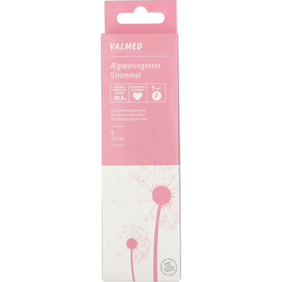 ValMeds ägglossningstest för hemmabruk har mer än 99,8% tillförlitlighet. Testet mäter närvaron av hormonet LH (luteinhormon). Ägglossningstestet kan ange exakt vilka dagar du har störst chans att bli gravid. Resultatet är klart redan efter 5 minuter.