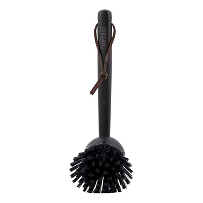 Stilrendiskborste från Meraki dekorerar köket fint Diskborsten är av bambu och svartbetsad, vilket framhäver träets struktur. Borsten är tillverkad av polypropen och försedd med ett praktiskt snöre så att den kan hänga över diskbänken. Borstens handtag ligger bra i handen och kan separeras från borsthuvudet som tål maskindisk.