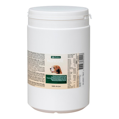 Diafarm Kanavit Tabletter är ett fodertillskott för hundar som ett dagligt komplement till det vanliga fodret. Innehåller vitaminer och mineraler, bland annat vitamin A, vitamin E, zink och magnesium. Vitamin A och zink bidrar till att bibehålla normal hud. Magnesium bidrar till att bibehålla normalt skelett och normala tänder.