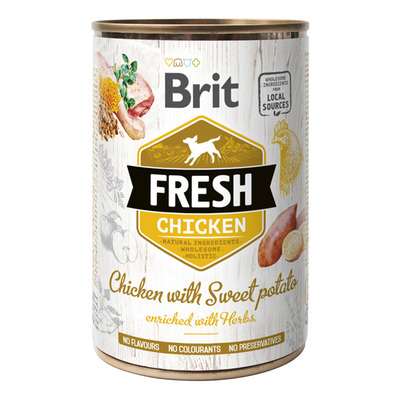 Brit Fresh våtoder kyckling med sötpotatis - 400 g - erbjuder komplett näring för vuxna hundar av alla raser
