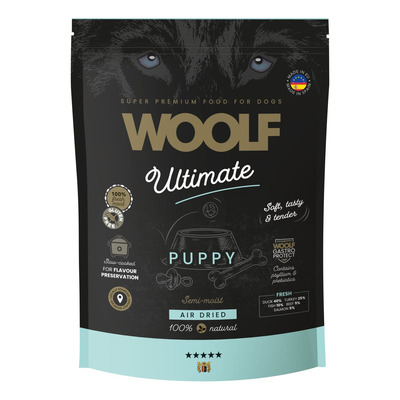 Woolf Ultimate, Puppy är ett halvmättat valpfoder med färsk anka och kalkon av hög kvalitet