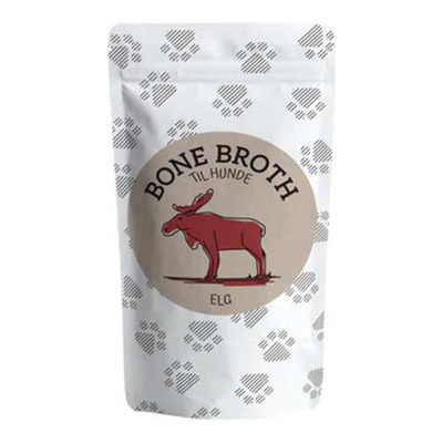Bone Broth Elg är ett fodertillskott kokat på ben från djur som är lämpligt för alla hundar