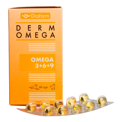 Diafarm Omega 3,6,9 kapslar är ett fodertillskott för hundar och katter. Innehåller omega 3-olja med EPA och DHA samt gurkörtsolja och jättenattljusolja. De fleromättade fettsyrorna bidrar till att bibehålla normal hud och päls. Produkten är berikad med vitaminer och zink.