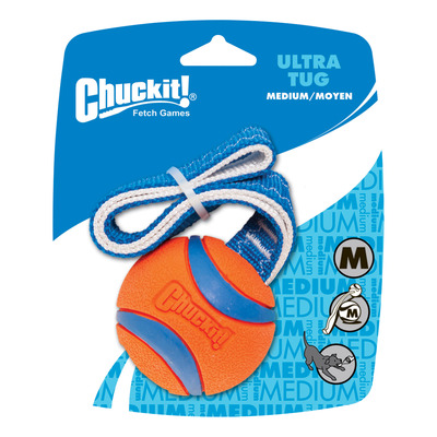 CHUCKIT Ultraboll på rep storlek M är en robust boll för drag- och apportlekar med din hund