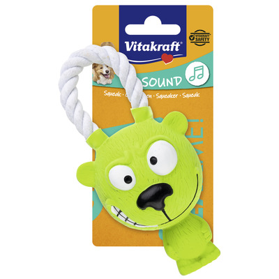 Vitakraft Pepper Dog med ljud är den perfekta leksaken för dig och din fyrbenta vän om ni älskar kast- och draglekar. Den gröna hunden har en praktisk ögla på huvudet som gör det enkelt att kasta leksaken långt bort. Det roliga gnisselljudet gör leksaken ännu mer attraktiv för din hund. Vitakraft Dog Pepper med ljud är robust och hållbar, perfekt för aktiv lek och träning. Ge din hund en spännande lekupplevelse med den här roliga och ljudaktiva leksaken från Vitakraft. Perfekt för både inomhus- och utomhusbruk.
