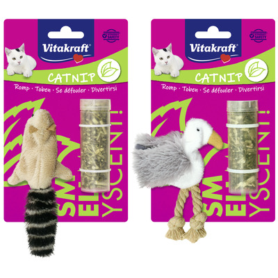 Vitakraft Mås/Ekorre med kattmynta refill är en spännande leksak för din katt. Leksaken föreställer antingen en fiskmås eller en ekorre och innehåller en praktisk behållare med torkad kattmynta som kan fyllas på efter behov. Vitakraft Mås/Ekorre är utformad för att stimulera din katts sinnen och uppmuntra till lek. Med en praktisk kardborrestängning kan leksaken enkelt fyllas med önskad mängd kattmynta, som inte bara luktar lockande utan också gör leken mer spännande.