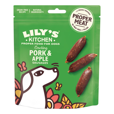 Lily´s Kitchen Cracking Pork & Apple Sausages for Dogs som både doftar och ser gott ut