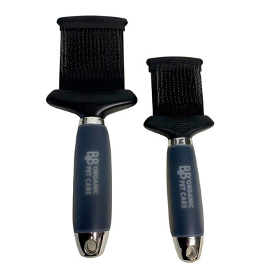 Flexibel karda från B&B är utrustat med en borste på båda sidor som effektivt reder ut löst hår, tovor och knutar