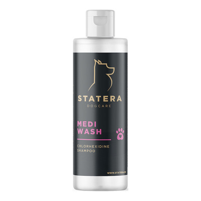Statera Medi Wash, Chlorhexidine Shampoo 4% är ett rengörande klorhexidin-schampo för hudproblem hos hundar och katter
