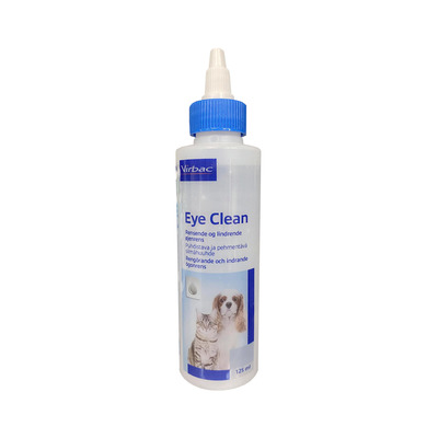 Denna produkt från Virbac både rengör och lindrar ögonen hos hund och katt. Eye Clean är en isotonisk och lindrande lösning som rengör själva ögat och området runt ögat. PH -värdet är identiskt med tårarnas pH -värde hos hund och katt.