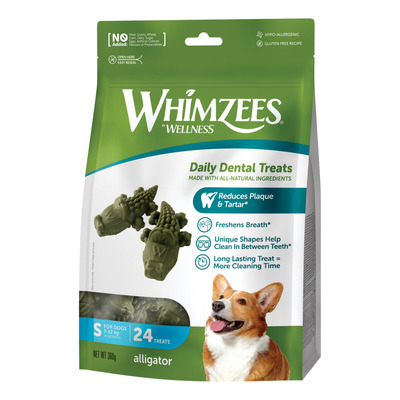 Whimzee's Alligator S är roliga och effektiva tandgodis för små hundar