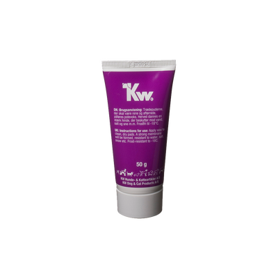 Tassvaxkräm i tub från KW skapar ett skyddande membran över hundens trampdynor och skyddar mot t.ex. vatten, salt och snö etc. Tassvaxet förebygger sprickor och används särskilt på vintern, när kyla, snö och salt är särskilt tuffa för hundarnas trampdynor.