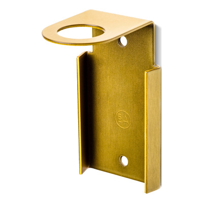 Detta praktiska väggfäste är utformat för att förvara olika kroppstvålar och handdesinfektionsmedel från Badeanstaltens läckra sortiment. Den är tillverkad i Danmark av hållbar mässing och har sedan lackerats för att ge den en extra vacker, gyllene och glänsande finish som håller även i det fuktiga badrumsklimatet. Den praktiska hållaren ger ditt badrum en elegant och modern finish och sparar mycket utrymme vid handfatet.