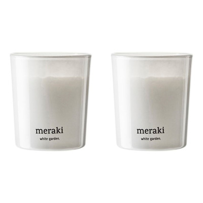 Materialet är biologiskt nedbrytbara, utan tungmetaller samt uppfyller RAL-standarder. Meraki White Garden doftljus avger en lugnande doft av blommor och mysk som skapar en avkopplande atmosfär. Ljuset innehåller allergiframkallande ämnen, så var uppmärksam när du använder det. Med sin vackra och enkla design är det här doftljuset ett perfekt komplement till alla hem.