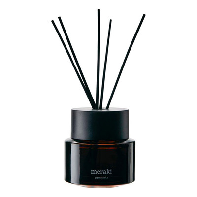 Ge ditt hem en mysig atmosfär med Meraki Fragrance Doftspridare Warm Tonka. Den eleganta doftspridaren i svart glas kombinerat med eleganta svarta stickor sprider en harmonisk doft av grapefrukt, kanel och tonka för att skapa en lugnande atmosfär. Perfekt för både vardagsrum och sovrum, Meraki Fragrance Freshener Warm Tonka ger en touch av elegans och komfort till alla rum. Njut av den kvardröjande doften för en lyxig känsla och ett varmt välkomnande varje gång du kommer in.
