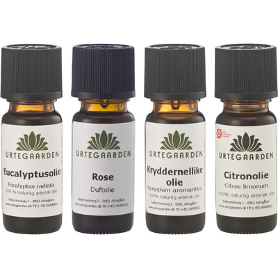 Setet från Urtegaarden hjälper dig att träna upp ditt luktsinne. Setet består av 4 oljor som alla har välbekanta dofter. Detta set innehåller eukalyptusolja, kryddnejlikaolja, rosdoftolja och citronolja. När du tränar luktsinnet bör du bara satsa på dofter som du redan känner till.