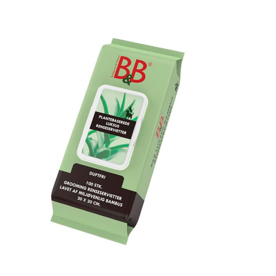 B&B Bamboo Cleansing Wipes är biologiskt nedbrytbara och ett hållbart alternativ till vanliga våtservetter. Bambufibrerna ger våtservetterna en kombination av styrka och mjukhet, vilket gör dem lämpliga för både snabb rengöring och daglig hygien.