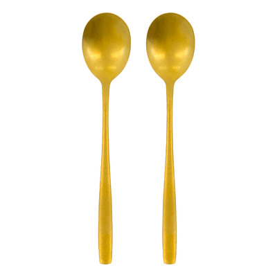 Nicolas Vahé Spoons NVDaily Antique Gold är ett set med två fina skedar som kombinerar funktionalitet och design. Skedarna är tillverkade av hållbart rostfritt stål och har en vacker antik guldfinish som ger en exklusiv touch till ditt matbord. Deras robusta men sofistikerade utseende gör dem idealiska för både vardagsbruk och speciella tillfällen.