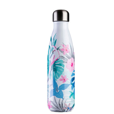 Sommartrevlig vattenflaska med blommor och papegojor. Använd den i skolan, på jobbet, i gymmet eller när du vill att vattnet förblir i den önskade temperaturen.