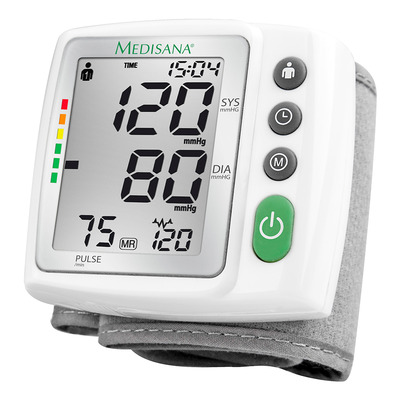 Blodtrycksmätaren Medisana BW 315 är utformad för exakt blodtrycksmätning på handleden och har en stor, lättläst display. Som certifierad medicinsk produkt är Medisana blodtrycksmätare tillförlitlig och varnar för oregelbunden hjärtrytm vid hjärtarytmier. De uppmätta värdena klassificeras med hjälp av en trafikljusskala för enkel avläsning av blodtrycksnivåer. Den stora handledsmanschetten passar en handledsomkrets på 12,5-21,5 cm, vilket gör den lämplig för de flesta användare.