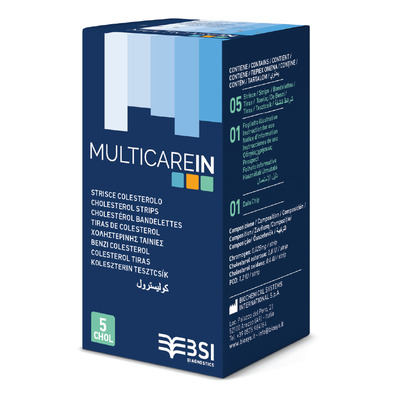 Förpackningen innehåller 5 stycken totalkolesterol test. Det kräver att du har Multicare In-enheten!