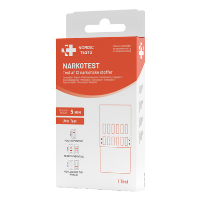 Nordic Tests 12-drogstest detekterar förekomsten av 12 missbrukspreparat och deras nedbrytningsprodukter i ett urinprov. Testet är inte avsett för medicinsk eller diagnostisk användning, men kan användas som ett första, vägledande screeningverktyg. Ett positivt resultat är indikativt och bör bekräftas genom ett laboratorietest. Testet detekterar cannabis (THC), kokain (COC), amfetamin (AMP), metamfetamin (MET), opioider, bensodiazepiner och ytterligare substanser upp till totalt 12.